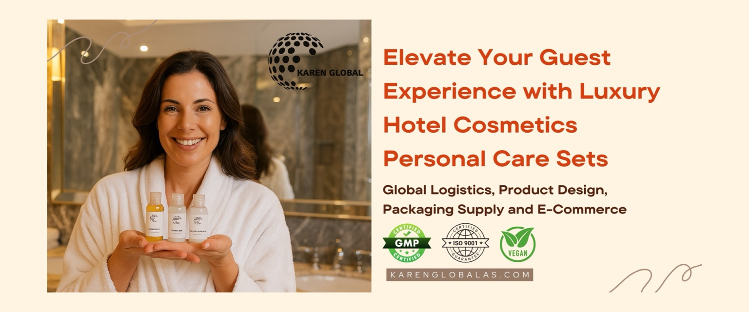 At Karen Global Cosmetics, we specialize in cosmetics manufacture export for the global hospitality sector. We provide high-quality, custom-designed hotel shampoo sets and personal care kits that reflect the luxury, hygiene, and identity of your hotel brand.